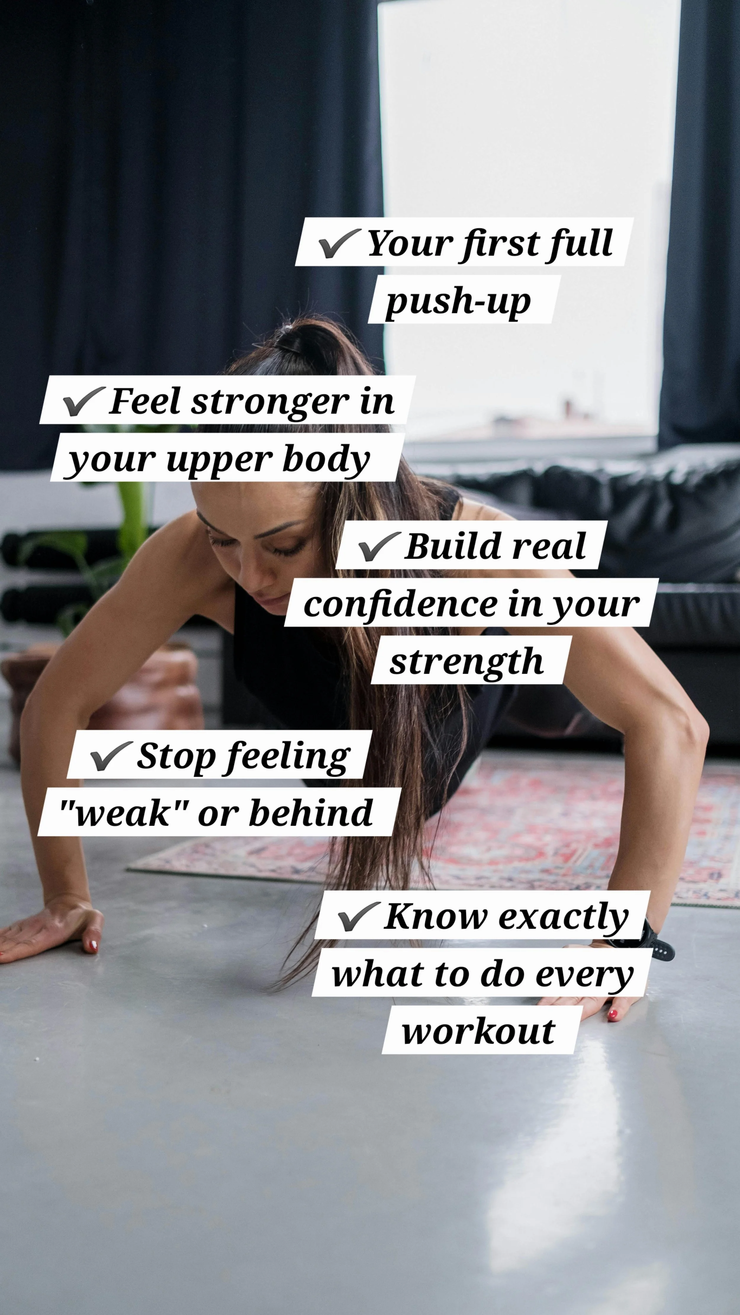 (wall → bench → knees → floor)and build strength step by step